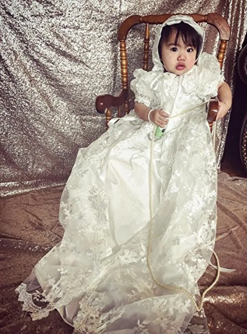 Best Formal Lace Applique Christening Dress For Baby Half Sleeve Baptism Gown First Communion Dresses Ki