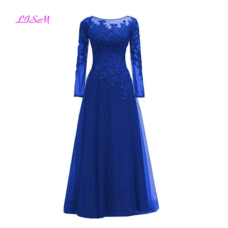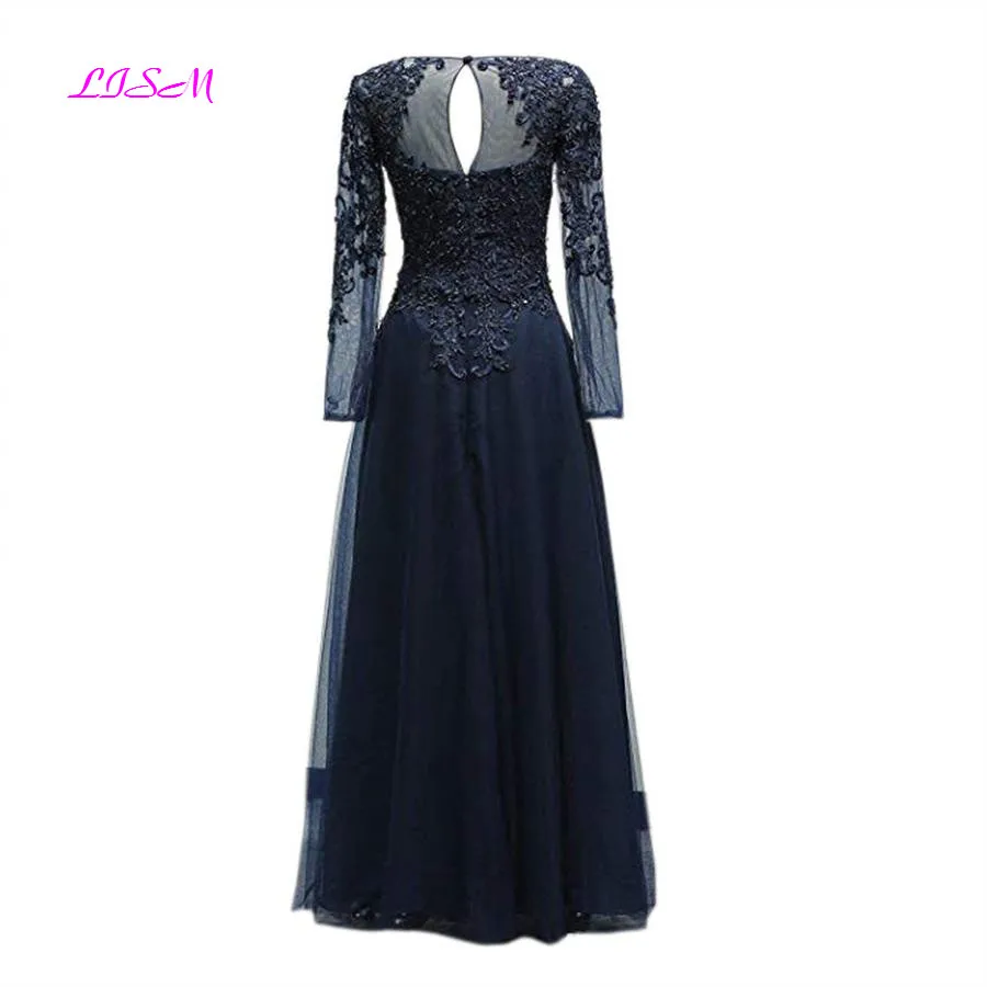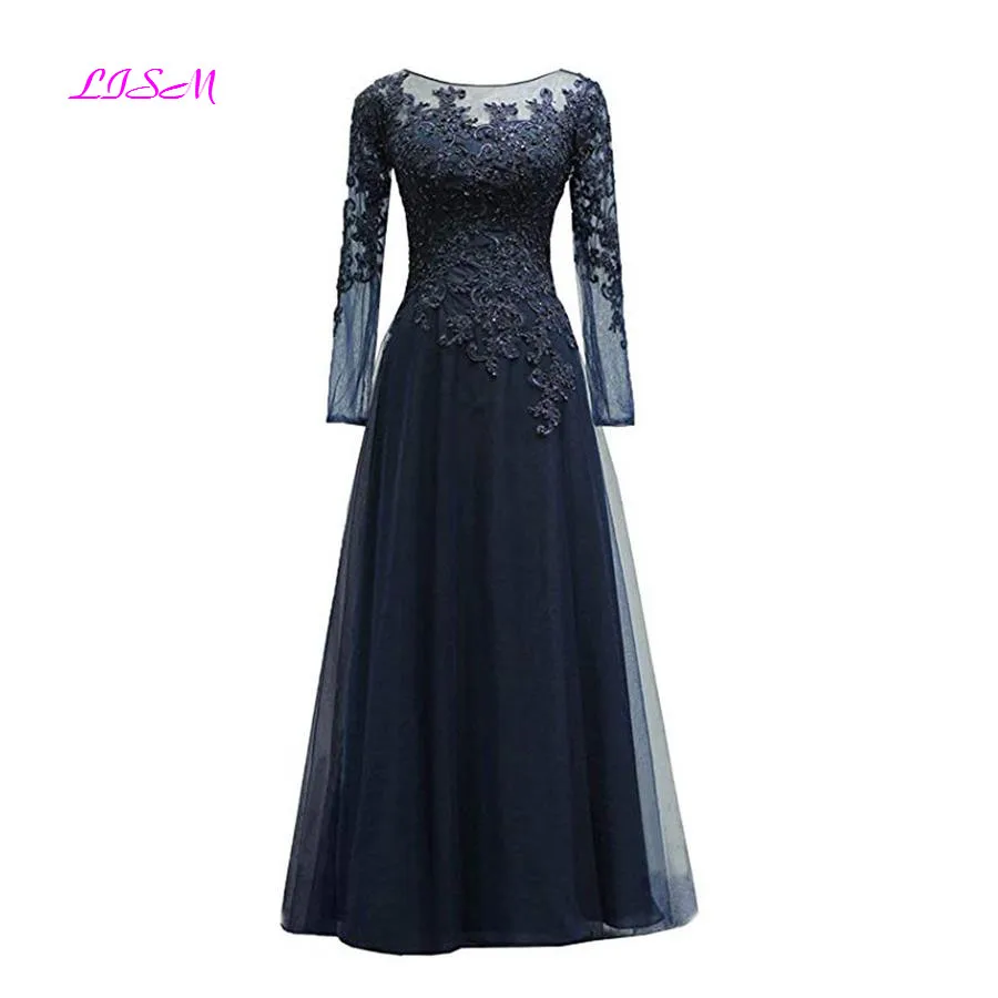 Get Illusion Appliques Tulle Mother of The Bride Dress Long Sleeves Evening Formal Gowns robe mere de l