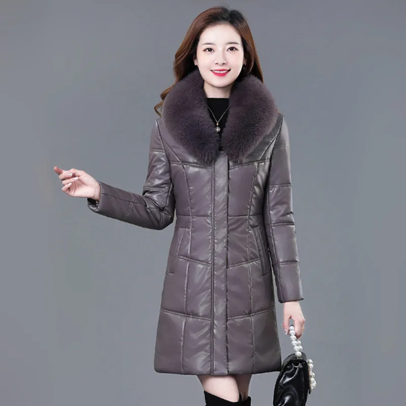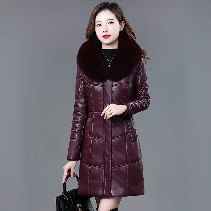 Best Women Sheepskin Coat Winter 2019 Fashion Mother Split Leather Overcoat Thicken Fur Collar Jacket Lo