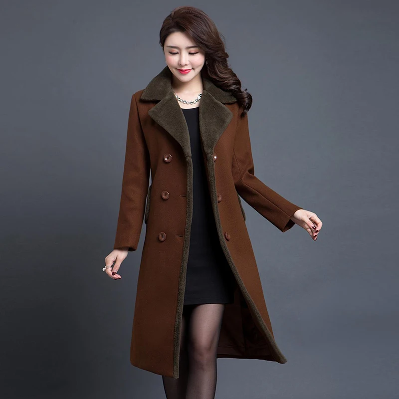 Discount High Quality Fashion New Autumn Winter Middle Aged Women Turn-down Collar Woolen Jacket Mother Long