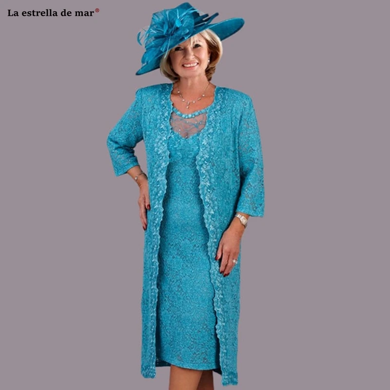 Limited Turquoise Lace Mother of the Bride Dresses new with Wrap Plus Size Tea Length Wedding Party Gownsve