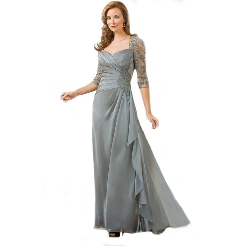 Limited vestido de noiva Gorgeous Beaded Lace Half Sleeve Queen Neck Draped A Line Silver Grey Plus Size Mo