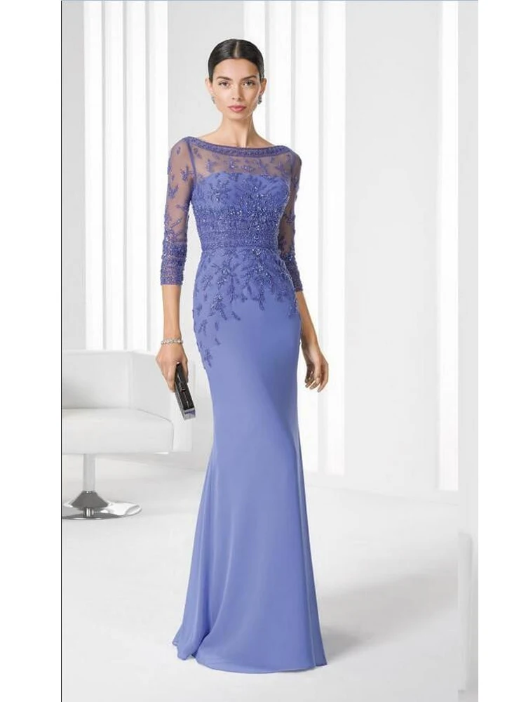 New 2020 Vintage Mother of Bride Dresses Womens Cheap 3/4 Sleeves Bateau Wedding Party Formal Evening G
