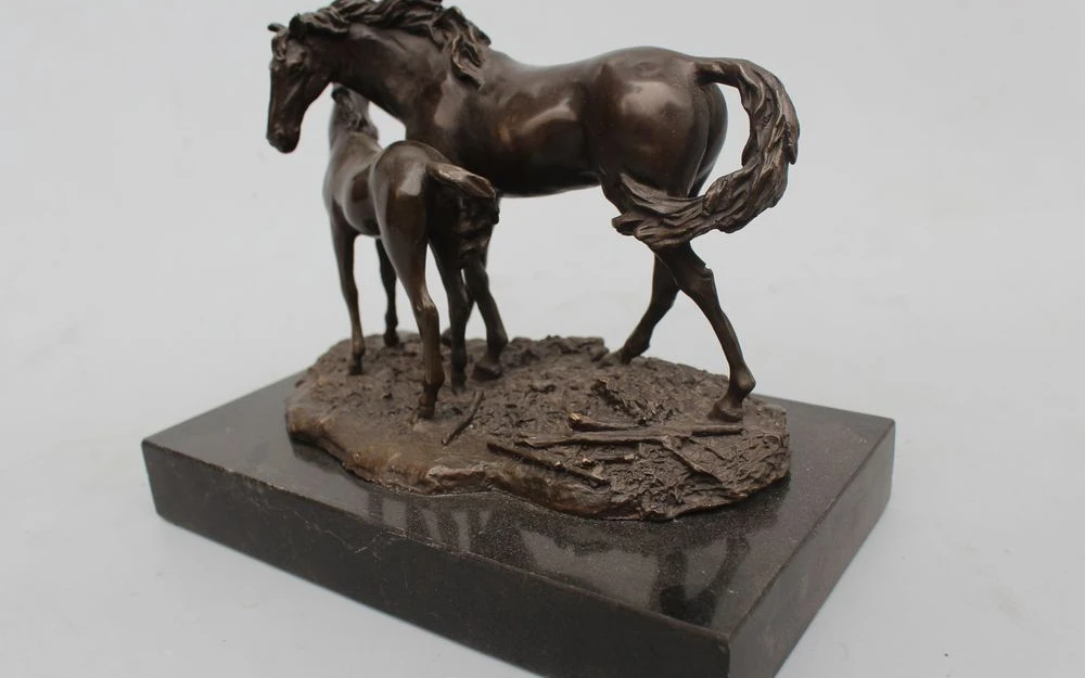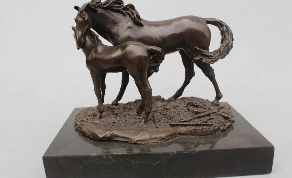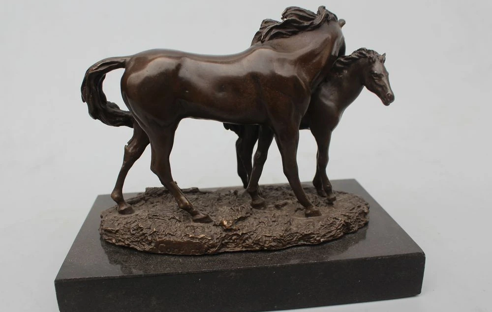 Home » best price , best seller , mother product » Free Shipping 8"Chinese Folk Copper Bronze Marble Lucky Two Mother & Son Horse Broncos Statue
