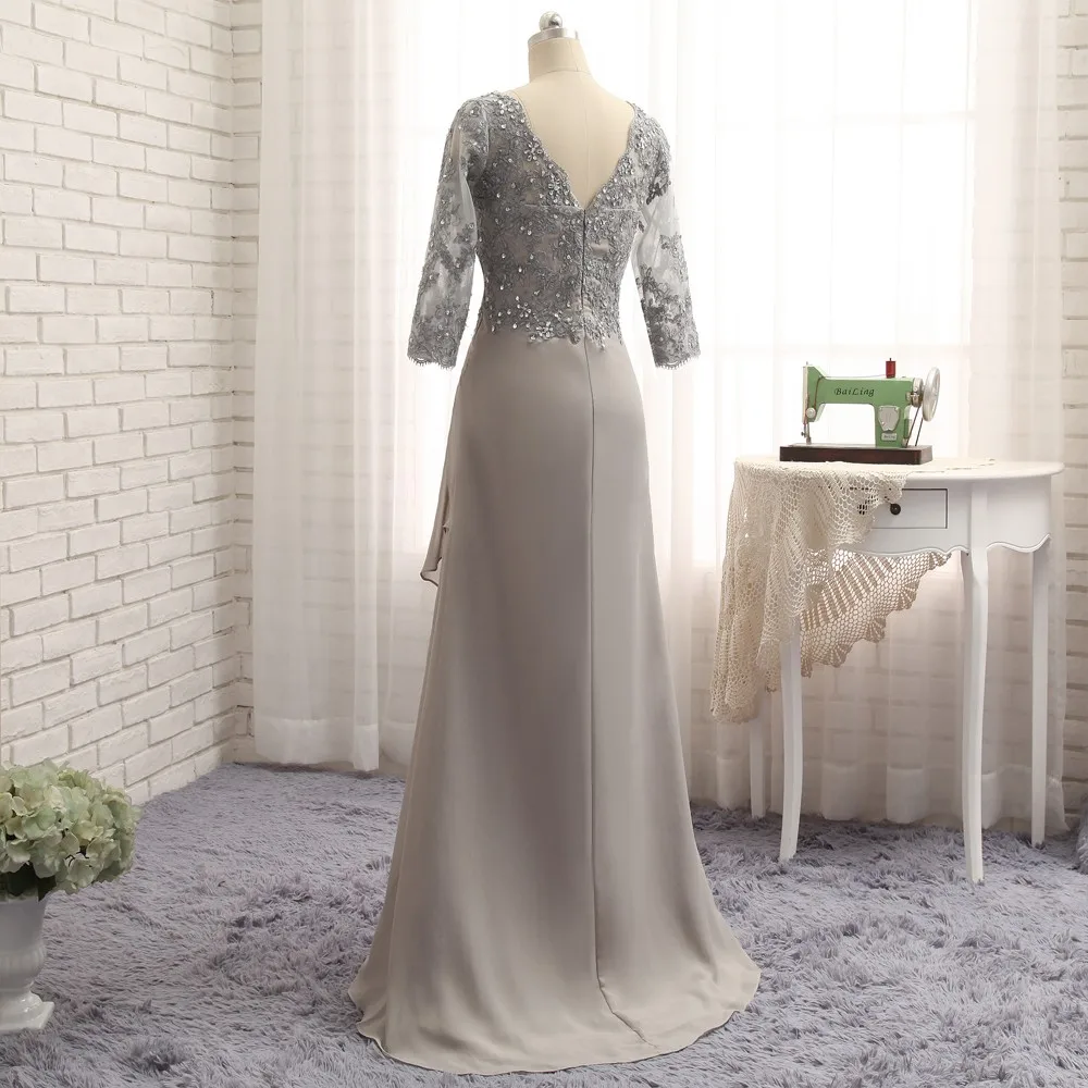 Free Shipping Plus Size Gray 2019 Mother Of The Bride Dresses A-line 3/4 Sleeves Chiffon Lace Wedding Party Dress