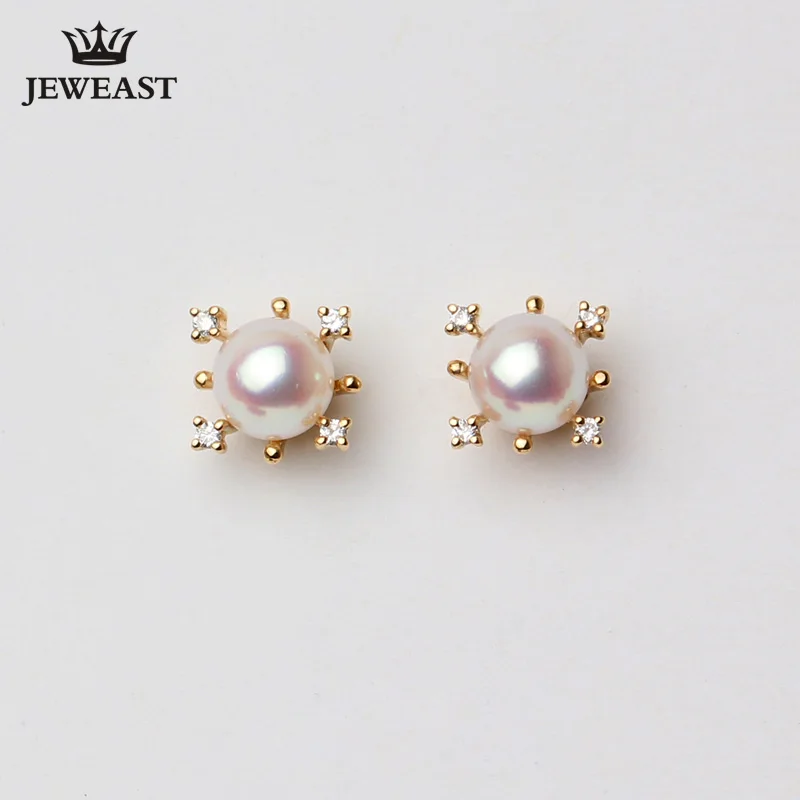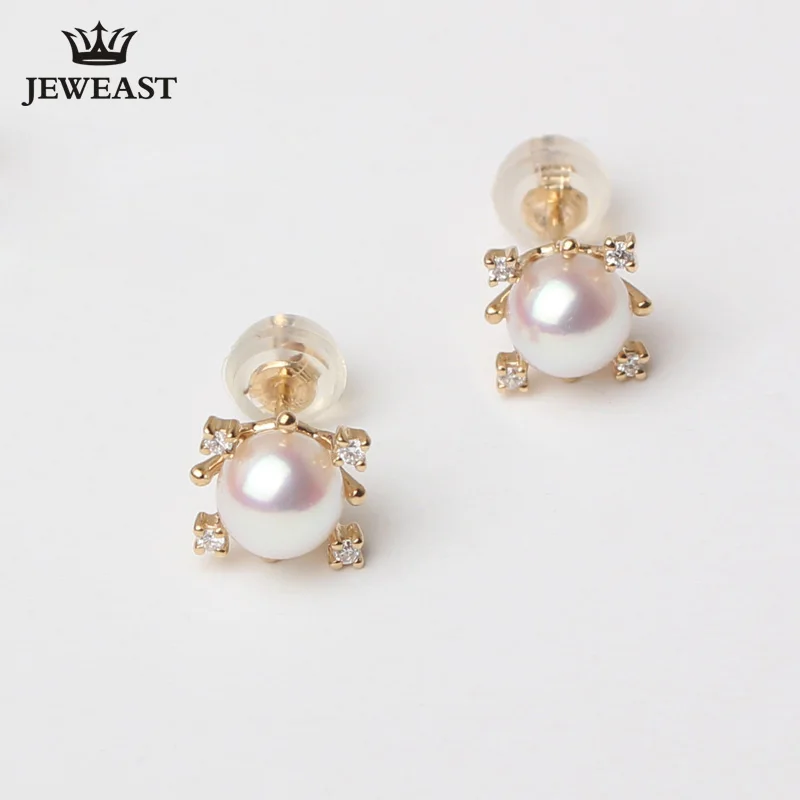 Buy 18k Pure Gold Yellow Japan Natrual Seawater Pearl Stud Earrings Genuine Upscale Jewelry Gift New Ho