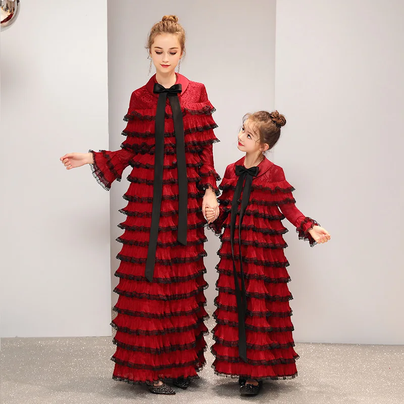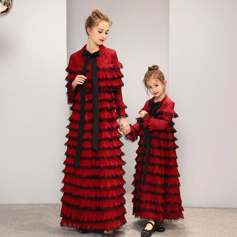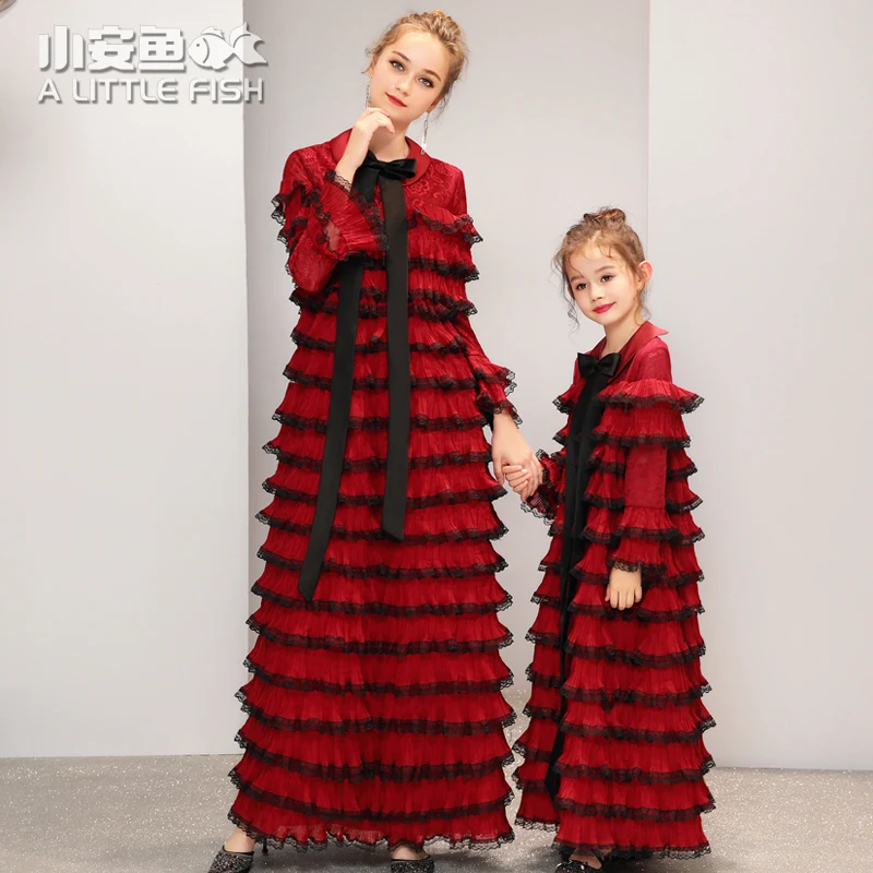 Free Shipping Mama Mother Daughter Dress 2019 Spring Winter Girls Beach Clothes Mommy and Me Wedding Dress Mom an