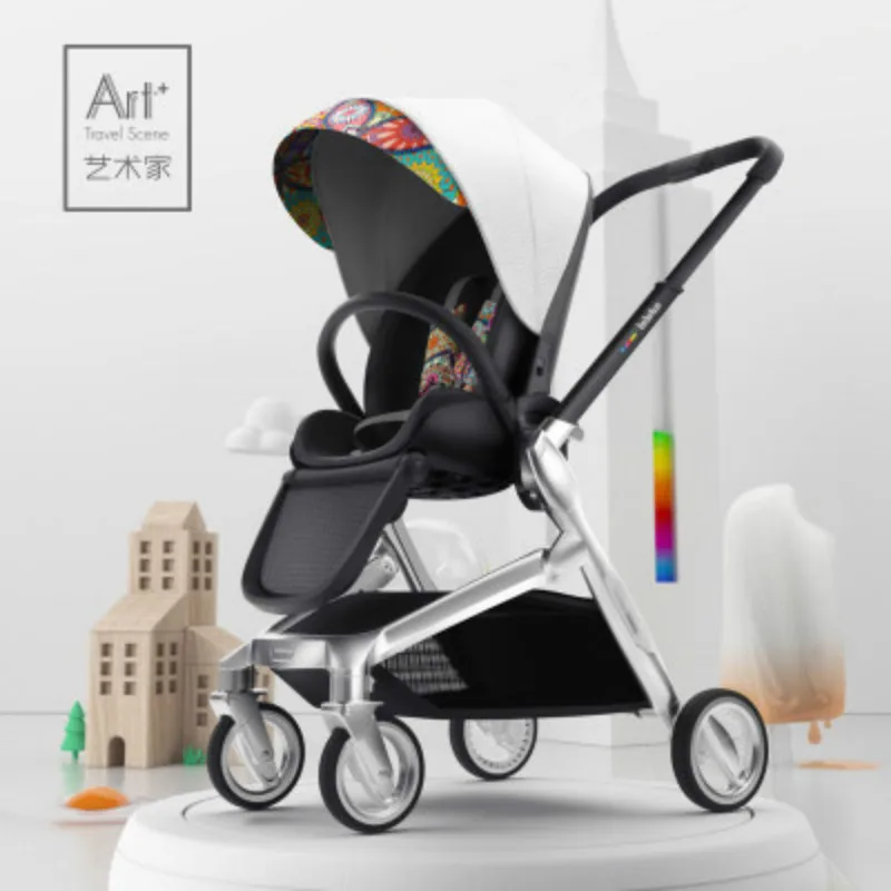 Free Shipping Multifunctional Baby Stroller 7.9KG Ultralight Folding Carriage High Landscape Gold White Newborn B