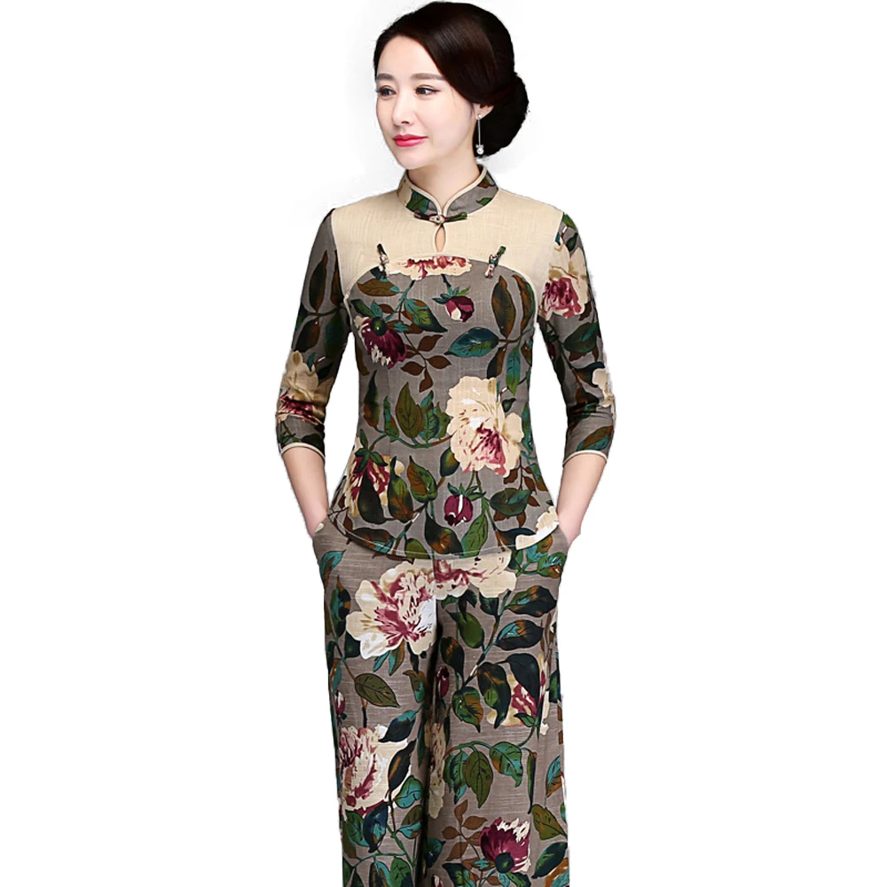 Get Summer tangzhuang qipao coat female short improved the stylish retro seven national linen two-piece