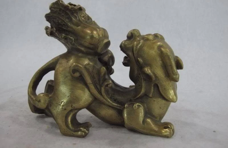 Limited JP S0524 9" Chinese Bronze mother and son Kylin Chi-lin Qilin ball Statue sculpture Pair Price : US $206.00 / piece Price af...