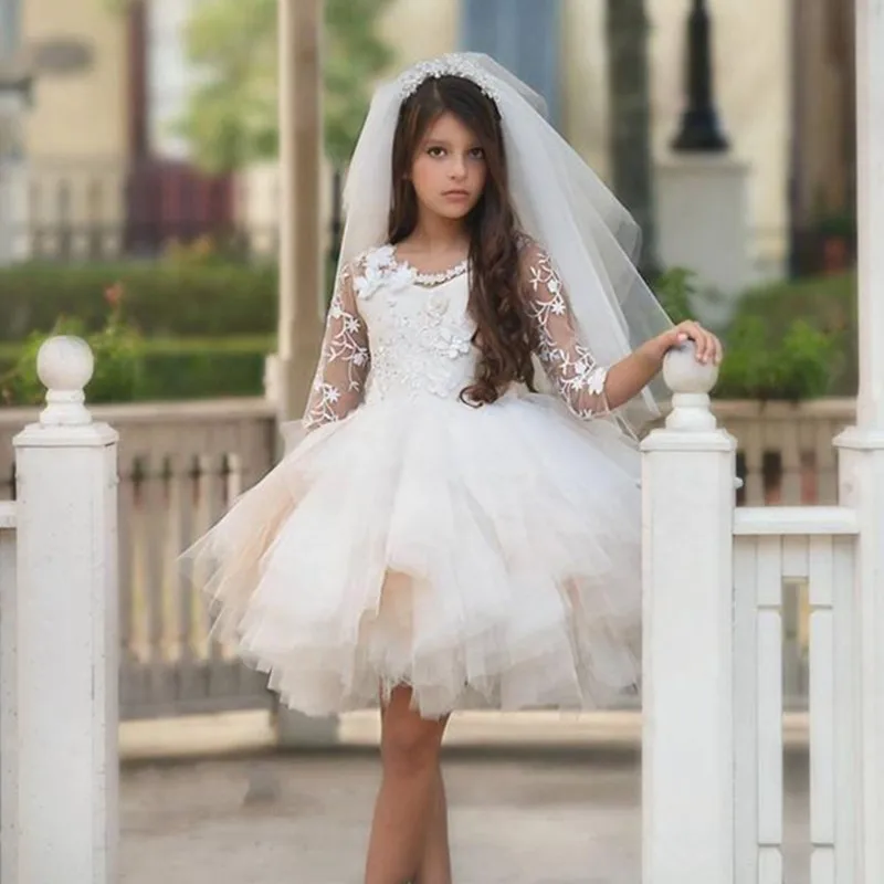 Get Flower Girl Dresses Knee Length Trailer Wedding Half Sleeves Party Dress For Girls First Communion