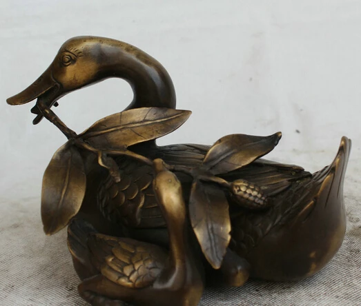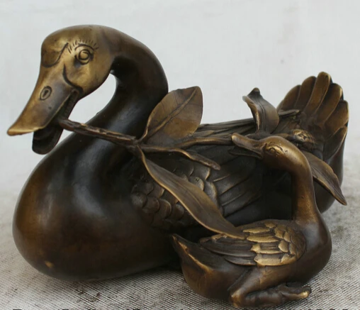 Hot Product JP S0524 8" Chinese Copper Feng Shui Folk animal Mother son duck quacker Statue sculpture