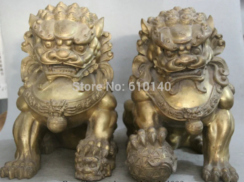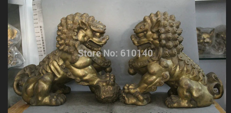 Hot Product K@@AA@16" Chinese Brass Folk Animal mother and son Lion ball sculpture Statue Pair