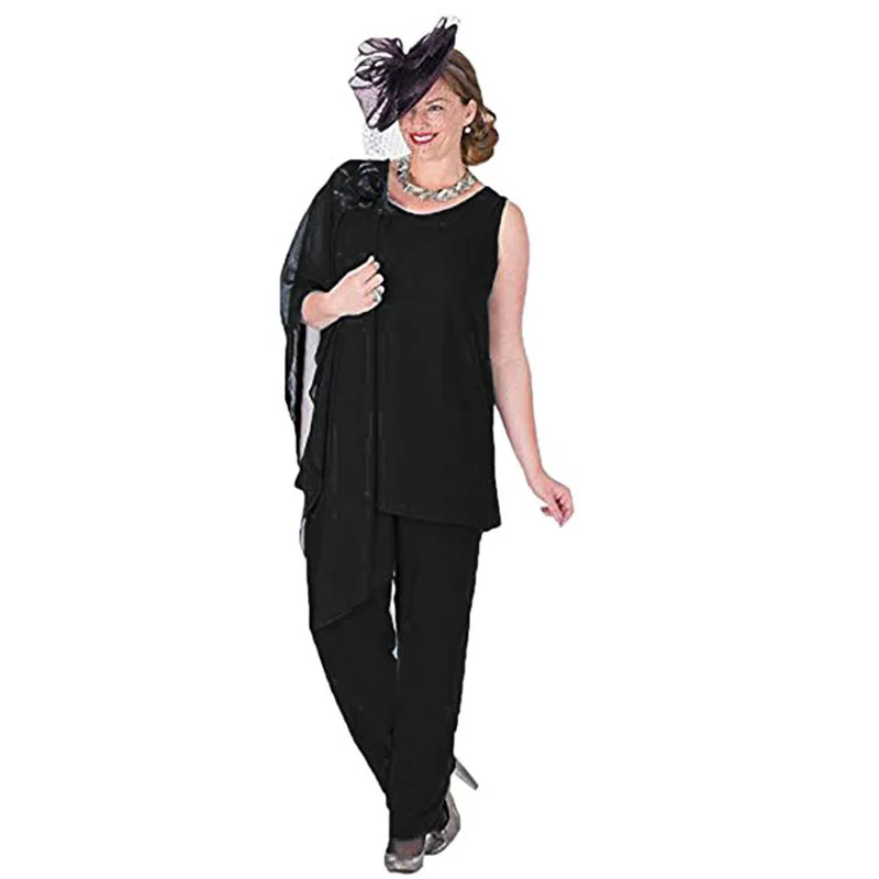Cheap Elegant 3 Pieces Mother The Bride Pant Suits Dress Chiffon Jacket Mother Of The Bride Dresses Plus