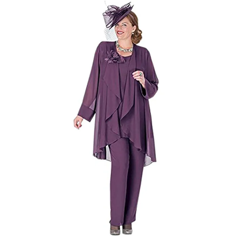 Limited Elegant 3 Pieces Mother The Bride Pant Suits Dress Chiffon Jacket Mother Of The Bride Dresses Plus