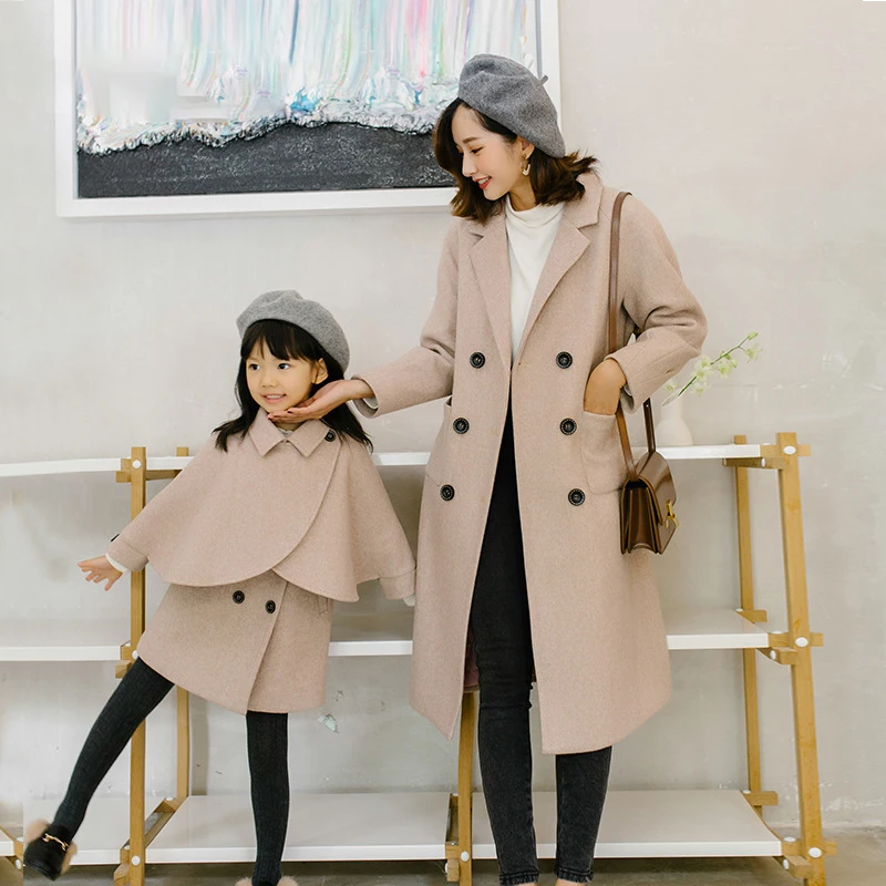 Home » best price , best seller , mother product » Limited Winter Parent-child Korean Version of Cape Vest Skirt Two Pieces of Long Woolen Coat Mommy and Me C