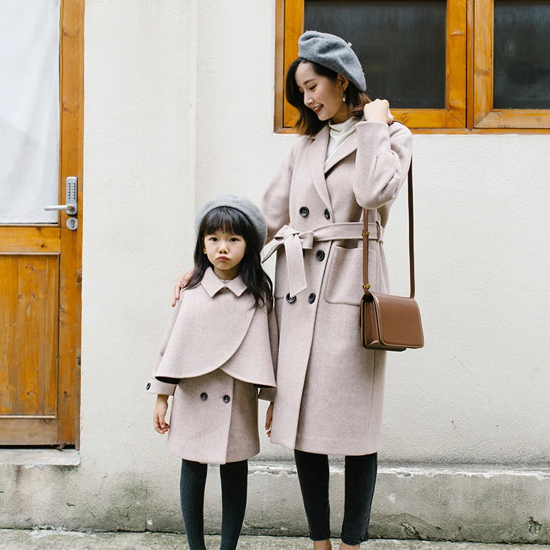 Limited Winter Parent-child Korean Version of Cape Vest Skirt Two Pieces of Long Woolen Coat Mommy and Me C