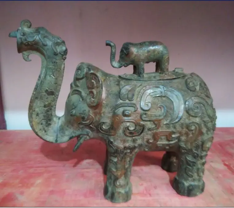 Limited Chinese folk collection of bronze incense burner the elephant mother and child
