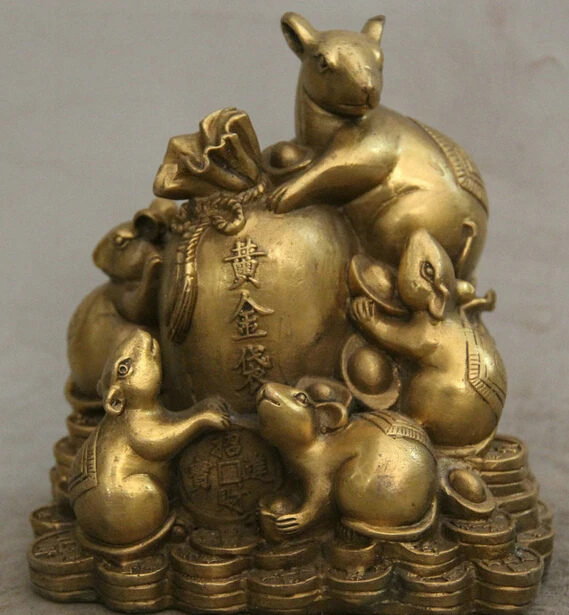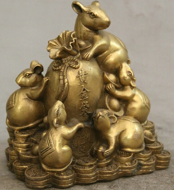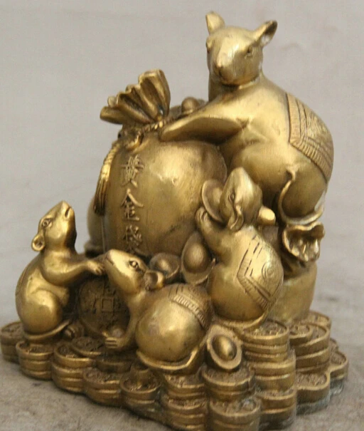 Buy JP S0522 6" China Brass Wealth moneybag Zodiac Year mother and son Mouse sculpture Statue B0403