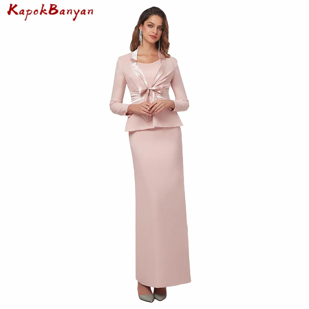 Promo Two pieces Chiffon Mother of the Bride Dress with Long Sleeves Jacket Long Mother Outfits Wedding P
