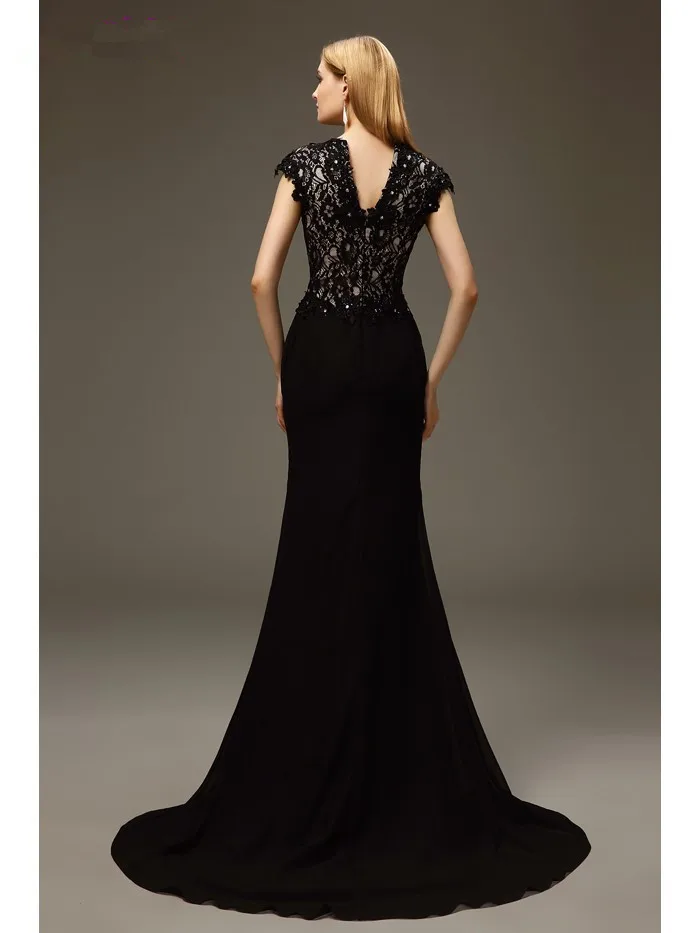Home » best price , best seller , mother product » Special Black 2019 Mother Of The Bride Dresses Mermaid V-neck Cap Sleeves Chiffon Lace Beaded Long Elegant