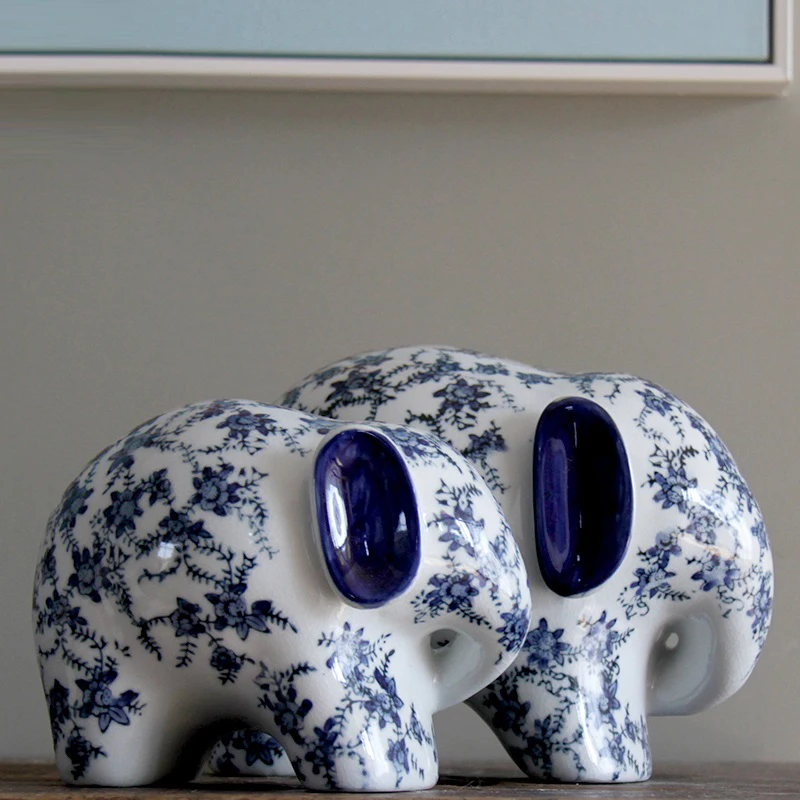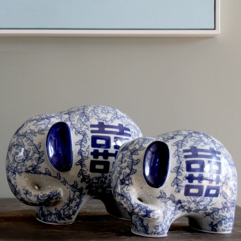 Special Product Ceramicblue and white ceramic mother and child handicraft decoration of new house ceramic elephant