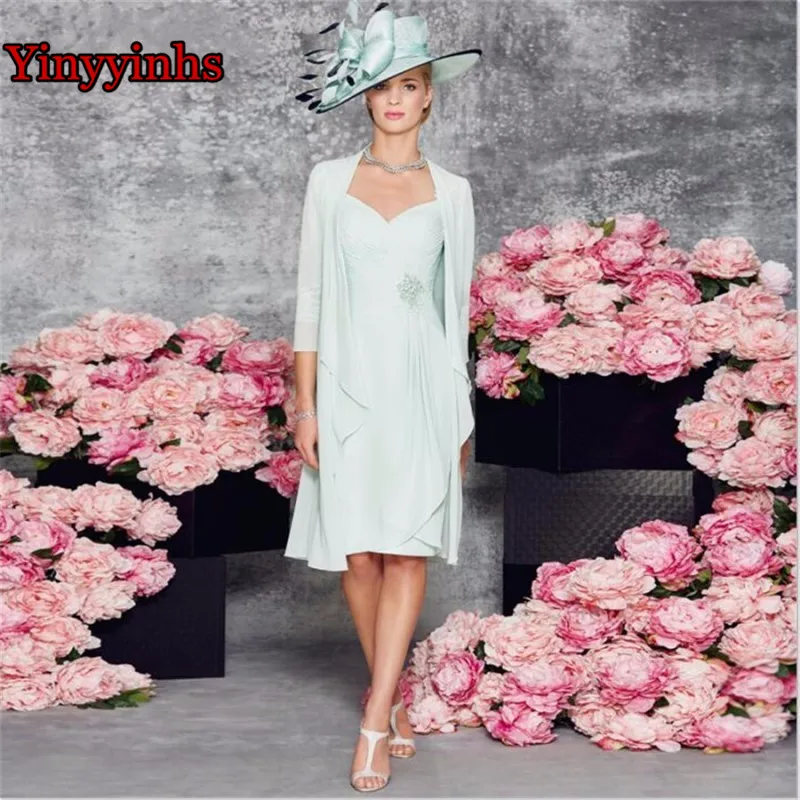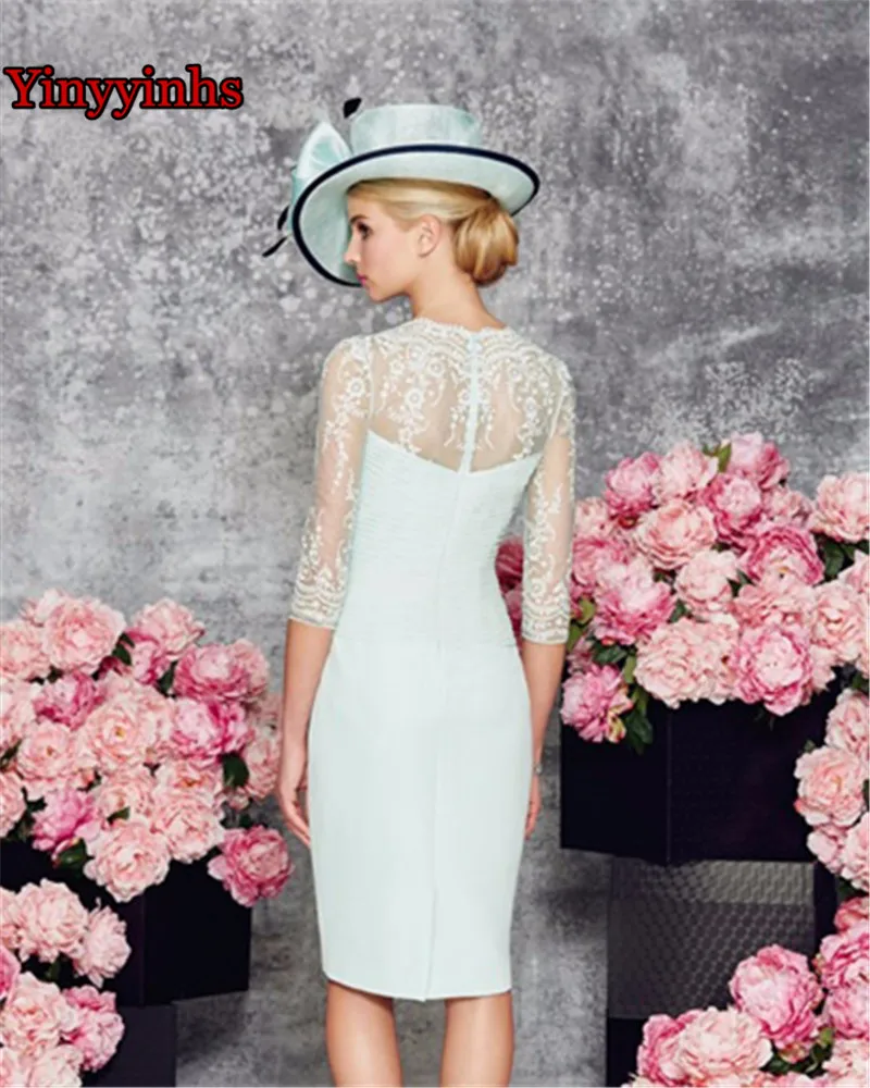 Special Two Piece Knee Length 2019 Mother Of The Bride Dresses Sheath 3/4 Sleeves Chiffon Lace Short Prom P